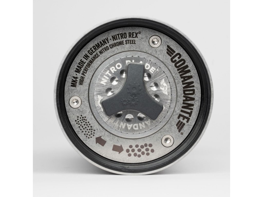 Mlecí mechanizmus je vyrobený z patentovanej nerezovej ocele Nitro Rex®, ktorá sa vyznačuje vysokou tvrdosťou, dlhou životnosťou a chuťovou neutralitou. Presné klikacie nastavenie hrubosti umožňuje opakovateľné výsledky v širokom rozsahu mletia pre filtrované metódy aj espresso.